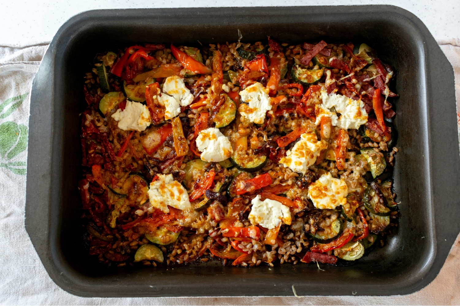 This farro pizza bake combines the nutritional benefits of farro with plenty of vegetables, making it a comforting meal that still feels wholesome and balanced.